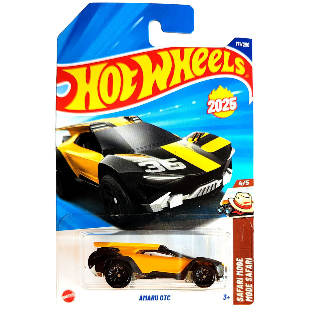 Este é o veículo Hot Wheels Básico Mattel Safari Mode Amaru GTC (Lote M - 2025), em die-cast e escala 1:64.